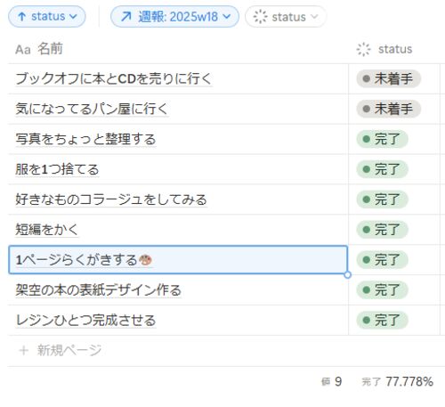 一時期週報毎週ハイテンションだったのに最近毎週ローテンションだねこんばんは というわけでこんな感じ、今日にブックオフとパン屋行こうと思ってたんだけど今日が雨の時点でもう無理だと思って2つ追加。 GW後半は断捨離になりました、古い書類とかもだいぶ…
